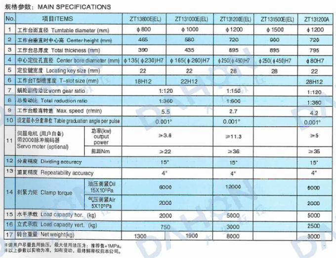 • 產(chǎn)品名稱: ZT13(800-1200)EEL&ZT131200A系列立臥兩用(大型)數(shù)控回轉(zhuǎn)工作臺(tái)