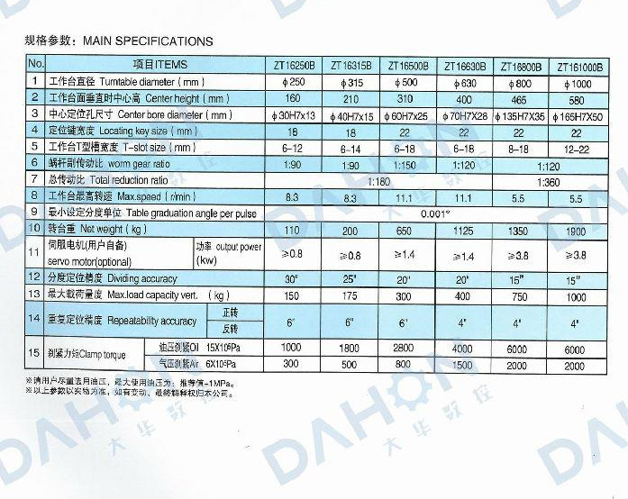 • 產(chǎn)品名稱: ZT16(250-1000)系列立式數(shù)控回轉(zhuǎn)工作臺